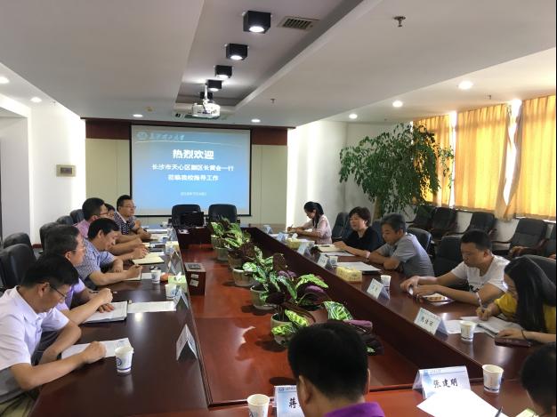 7月19日上午,长沙市天心区副区长黄会、区政协副主席彭泽南、区科技局副局长苏奇、许品方等一行来MG冰球官网调研。会前,校党委副书记邹宏如会见了黄会一行。座谈会在云塘校区一办公楼五楼会议室召开。副校长杨伟军,科研部、人文社科处主要负责人以及相关学院副院长出席了座谈会,会议由科研部副部长王建辉主持。