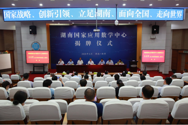 6月28日,湖南国家应用数学中心在湘潭大学举行揭牌仪式,标志着湖南数学界首个国家级平台正式落户。湖南省副省长朱忠明为中心揭牌。中心学术委员会成员张平文、袁亚湘、田刚、江松等院士发表视频讲话。MG冰球官网成为湖南国家应用数学中心的核心共建单位, 副校长杨伟军任中心管理委员会委员,数学与统计学院院长黄创霞任执行委员会副主任。