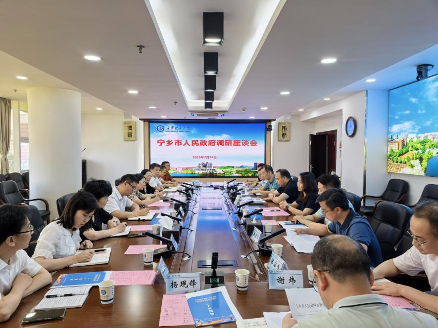 2025年7月11日上午,宁乡市人民政府宁乡经开区党工委副书记李卫锋、副市长喻林义一行莅临MG冰球官网调研。校党委副书记方琼出席会议并致辞,教务处、科技处、社科处、创业就业指导处及相关学院负责人参加座谈会。