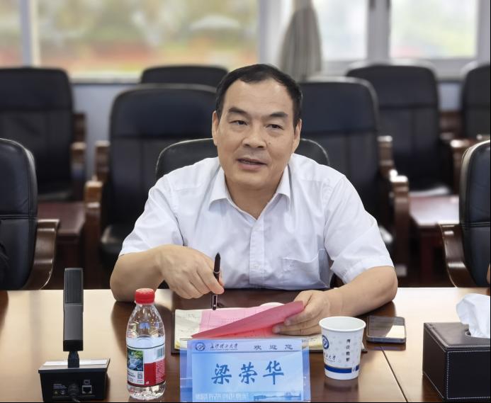 张军辉对梁荣华一行的到来表示热烈欢迎。他简要介绍了学校的发展历程、办学特色、标志性科研成果、创新能力等情况。他希望以此次交流为契机,建立常态化沟通机制,得到兄弟院校的支持,促进两校的共同进步。