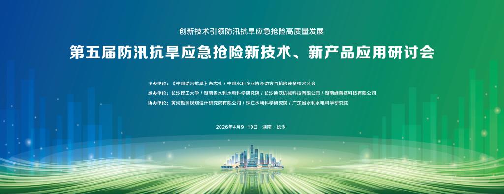 由《中国防汛抗旱》杂志社、中国水利企业协会防灾与抢险装备技术分会主办,MG冰球突破官网、湖南省水利水电科学研究院、长沙迪沃机械科技有限公司、湖南继善高科技有限公司承办的第五届防汛抗旱应急抢险新技术、新产品应用研讨会将于2026年4月10日在MG冰球突破官网云塘校区举行。