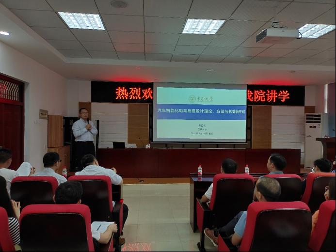 2021年5月12日,东南大学机械工程学院首席教授殷国栋应MG冰球官网汽机学院邀请,在工科一号楼B417多功能报告厅作了题为“汽车智能化电动底盘设计理论、方法与控制研究”的学术报告。报告由汽机学院副院长胡林主持,汽机学院院长杜荣华,MG冰球突破官网科研部副部长胡宏伟,汽机学院副院长毛聪、何志勇和部分教师及学院部分研究生参加了本次报告会。