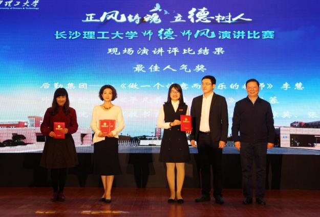 经过专家评审、大众评环节的角逐后,后勤集团子校李慧老师获现场演讲特等奖,马克思主义学院钟芙蓉、外语学院钟桂蓉获得一等奖,国际学院黄文卫、物电学院郭剑、交通学院韩伟威获得二等奖,数统学院王跃恒、经管学院张帆帆、土木学院贺佐杰、机关万馨获三等奖,其余10位选手获得优秀奖。比赛还设立了演讲稿创作奖及现场人气选手奖。与会领导嘉宾为获奖选手颁奖。