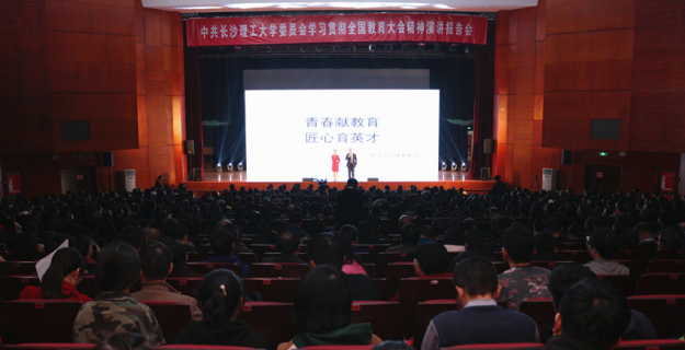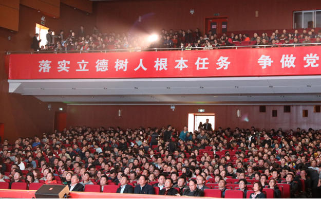 11月27日下午,MG冰球官网在云塘校区大会堂举行学习贯彻全国教育大会精神演讲报告会。演讲报告会以“师声传师心,师德铸师魂”为主题,由来自各学院和子弟学校的10余名教师代表主讲,在家校领导、近1500名教职工参加报告会。