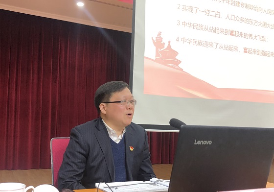 根据学校统一部署,12月22日上午,校党委副书记刘建民为离退休老同志宣讲党的十九届六中全会精神,离退休中心党委书记刘朝辉主持宣讲报告会。离退休中心32个支部书记委员、39个自助服务小组长、关工委、老科协代表及离退休中心全体工作人员等近120人聆听了报告。