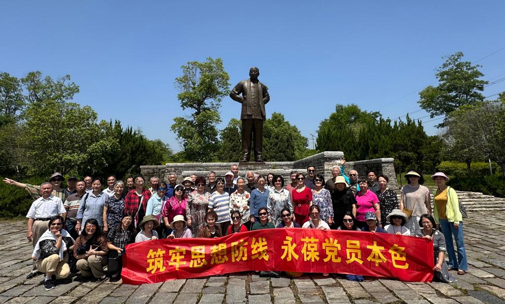 5 月 9 日,物电学院和材料学院自助小组的 25 位退休教师参观田汉故居、铜像广场。在参观过程中,老师们对田汉先生的文学艺术成就有了更深刻的认识。大家相互拍照留念,交流生活点滴,表达了对学校和离退休中心的感谢之情。
