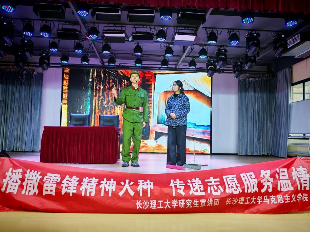 活动伊始,宣讲团成员共同演绎原创情景剧《我与雷锋的那些日子3.0》。剧中,大学生“小郑”意外“穿越”到了1960年,巧遇正在街头巡逻的雷锋,从最开始的警惕到放下戒备跟雷锋回部队,亲眼目睹到他助人为乐的点点滴滴。最让人感触的是雷锋在“小郑”工作受挫时送给她一颗螺丝钉时所说的一段话,他说:“别看只是颗小螺丝钉,大型器械缺失它就要出毛病,我们每个人都是大大小小的螺丝钉”,他们生动的演绎让同学们对雷锋精神更加直观的感受。