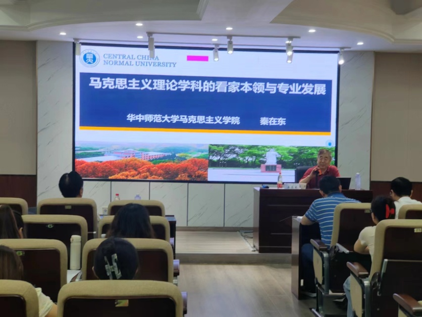 2024年6月15日下午,教育部高校马克思主义理论类专业教指委委员、华中师范大学马克思主义学院原院长、博士生导师秦在东教授应邀来到马克思主义学院,在MG冰球官网云塘校区文科楼D207报告厅主讲了“马克思主义理论学科的看家本领与专业发展”的学术讲座。本次讲座由我院张明海院长主持,文贵全副院长、王威峰副教授、陈方芳博士等学院教师和研究生近100人聆听讲座,此外,湖南文理学院党委副书记李红革教授也应邀参加了讲座。