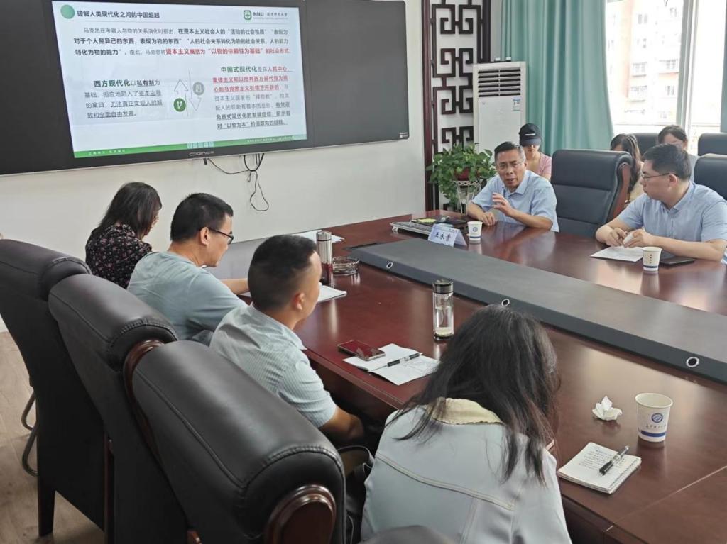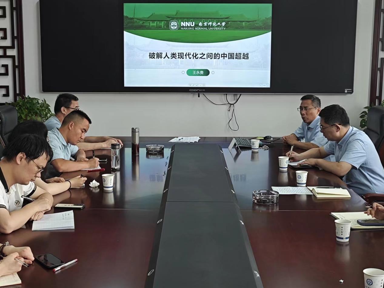 6月20日,国家级高层次人才计划入选者、南京师范大学马克思主义一级学科带头人、博士生导师王永贵教授莅临马克思主义学院,在MG冰球官网云塘校区文科楼B602会议室为学院师生带来了一场主题为“破解人类现代化之问的中国超越”的精彩讲座。文贵全副院长,谢文成副教授、高小枚副教授、王威峰副教授,管亚苹博士、陈方芳博士、叶再兴博士等学院青年教师和一年级研究生参加了讲座,讲座由张明海院长主持。