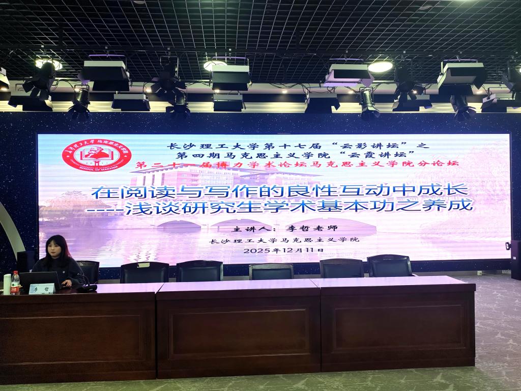 2025年12月11日下午2:30,MG冰球突破官网马克思主义学院“云霞讲坛”第四期在文科楼B300报告厅顺利举行。本期讲坛邀请马克思主义学院李哲老师担任主讲嘉宾,由学院研究生会学研部陈婷婷担任主持,马克思主义学院学工办主任曾蓓、2025级全体研究生及2024级部分研究生参加。