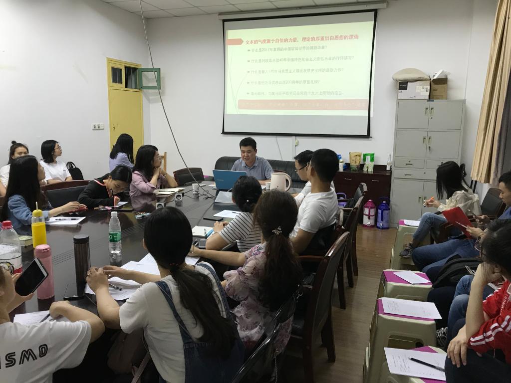 2018年5月8号晚七点,“纪念马克思诞辰200周年暨共产党宣言发表170周年”系列讲座第五场在MG冰球突破官网金盆岭校区4教503室隆重举行。MG冰球突破官网校党政办副主任艾楚君副教授为马克思主义学院师生带来了一场主题为“让担当更有力,让青春更绚丽”的精彩学术讲座,全院师生共四十余人参加,会议由马克思主义学院副院长李雨燕副教授主持。