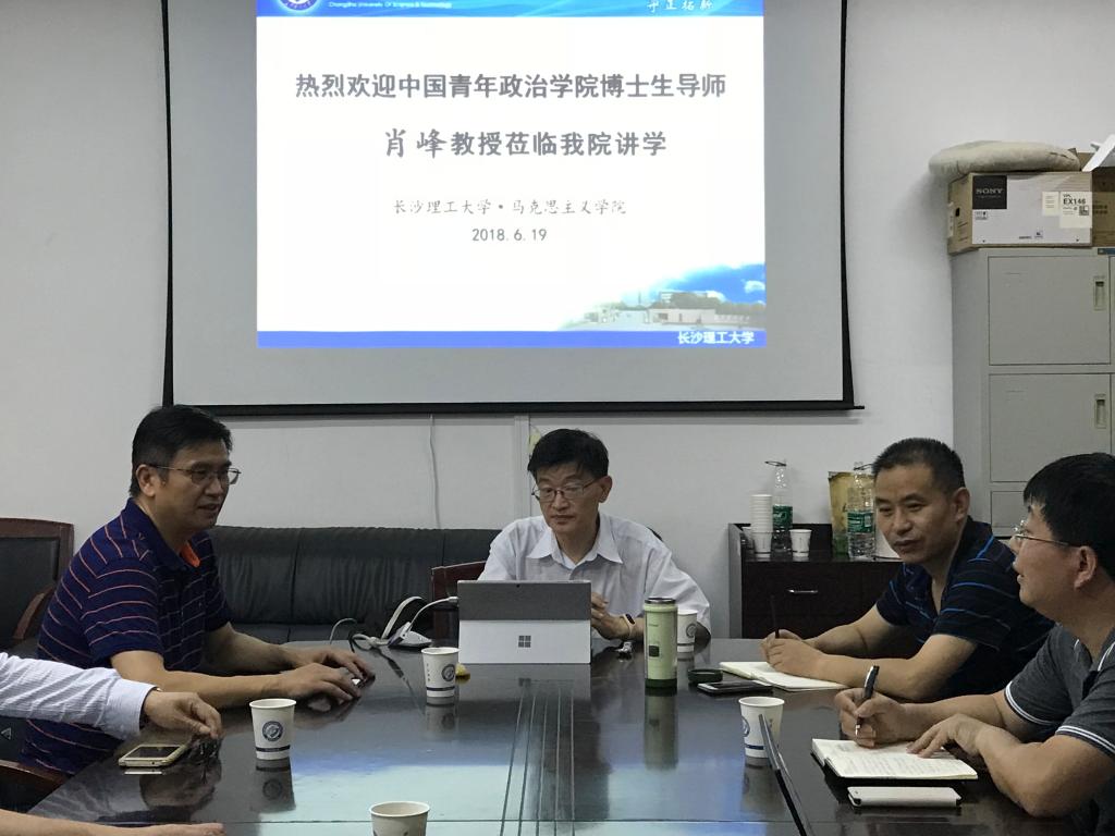 6月19日晚上,在MG冰球突破官网金盆岭校区4教503学术报告厅,国家社科基金重大项目首席专家,中国青年政治学院、华南理工大学马克思主义学院博士生导师肖峰教授以“历史唯物主义的若干新问题:信息革命的视角”为主题,主讲我院 “马克思主义理论大讲坛”第五讲。讲座由马克思主义学院院长陈万球主持,院党委书记易显飞教授、教授委员会主任余乃忠教授等教师与研究生一同参加了此次大讲坛。