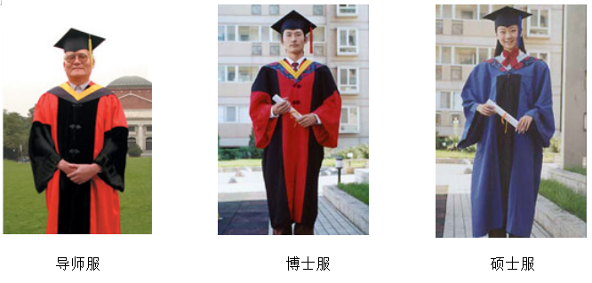 1、博士学位流苏为红色,硕士学位流苏为深蓝色,校(院、所)长帽流苏为黄色。