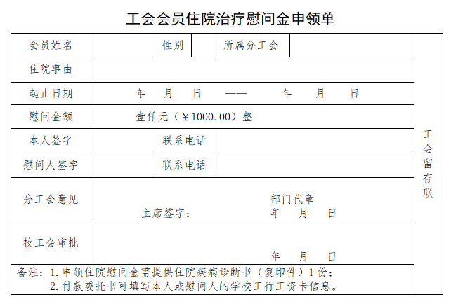 住院治疗慰问金申领单