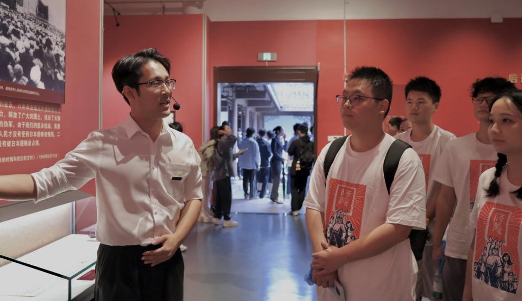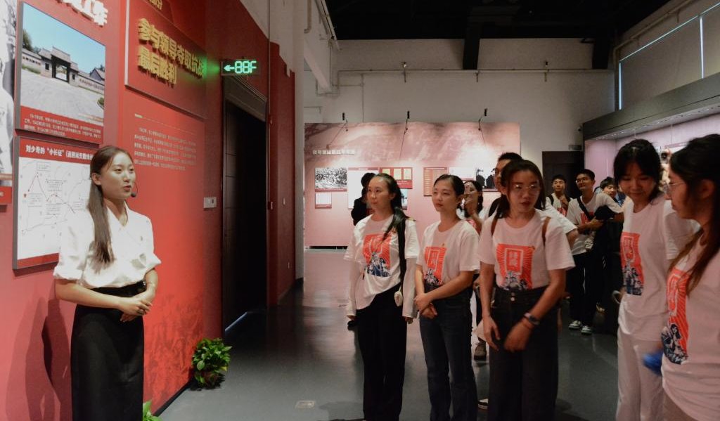 随后,师生们步入《烽火丹心—刘少奇与抗日战争》专题展览厅。刘少奇同志抗战时期的手稿、办公用品等文物静静陈列,纪念馆讲解员与学生讲解员共同为大家带来一场精彩纷呈的视听盛宴,让学生们深入了解刘少奇同志在抗日战争时期的卓越贡献,真切感悟其坚定的理想信念、崇高的革命精神和深厚的为民情怀。