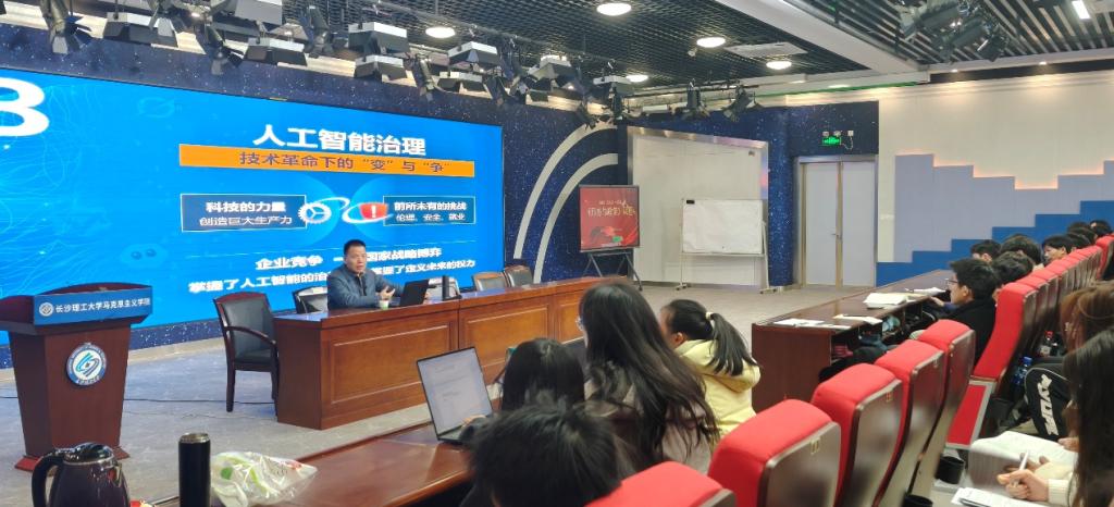 2025年12月6日上午,MG冰球突破官网马克思主义学院开展了《形势与政策》直播大课,在云塘校区文科楼 B300 报告厅举行。本次教学活动由副院长钟芙蓉主持,特邀国防科技大学周长峰副教授、湖南第一师范学院谭凯副教授担任主讲,采用 “现场授课+线上直播” 模式,云塘、金盆岭两个校区1万余名学生共同观看了直播课程。
