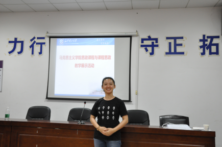 展示活动过程精彩纷呈、异常激烈,经评委会认真评审,最后决出五位优胜选手,分别代表五个课程组:廖苗老师代表《马克思主义基本原理概论》课题组,钟芙蓉老师代表《毛泽东思想和中国特色社会主义理论体系概论》课程组,唐英老师代表《中国近现代史纲要》课题组,刘佳男老师代表《思想道德修养与法律基础》课题组,何冬玲老师代表《形式与政策》课题组。这五位老师将代表马克思主义学院参加全校“课程思政与思政课程协同育人”展示活动。