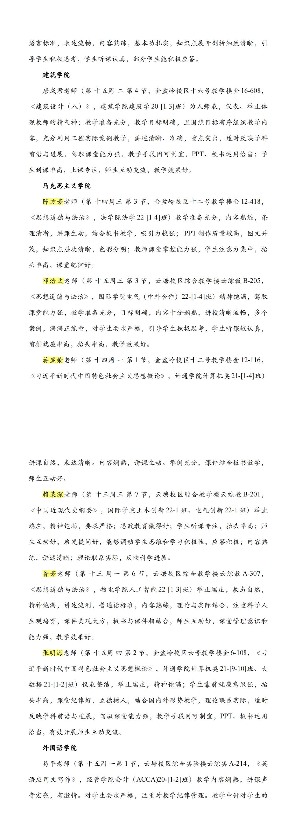 6月30日,MG冰球突破官网发布《本科教学督导信息》(23年第三期)简报。我院张明海、陈方芳、邓治文、蒋显荣、赖某深、鲁芳等六位教师获推MG冰球突破官网“课堂教学优秀典型”。