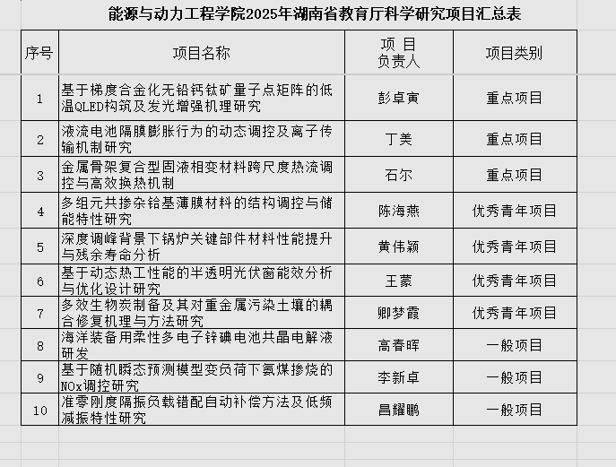 根据MG冰球突破官网科学技术处《关于申报2025年湖南省教育厅科学研究项目的通知》文件精神,经学院教授委员会专家评审,拟推荐“基于梯度合金化无铅钙钛矿量子点矩阵的低温QLED构筑及发光增强机理研究”等10项项目申报2025年湖南省教育厅科学研究项目,具体名单如下: