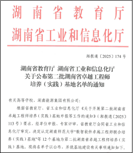 近日,湖南省教育厅、湖南省工业和信息化厅联合发布了《关于公布第二批湖南省卓越工程师培养(实践)基地名单的通知》(湘教通〔2025〕174号),由湖南能源集团与MG冰球突破官网能源与动力工程学院(以下简称“能动学院”)联合申报的“能源卓越工程师培养(实践)基地”成功获批立项。这是对能动学院在能源电力领域人才培养、实践教学体系建设及产教融合成效的充分肯定,标志着能动学院在卓越工程师教育培养方面迈上了新的台阶。