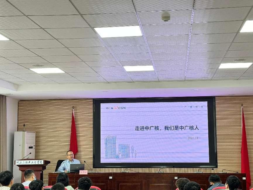 最后,张育彬为联培班学员授课——《走进中广核,我们是中广核人》,他通过历史使命、认识中广核、我们是中广核人三个篇章讲述了企业文化和干事创业作风。