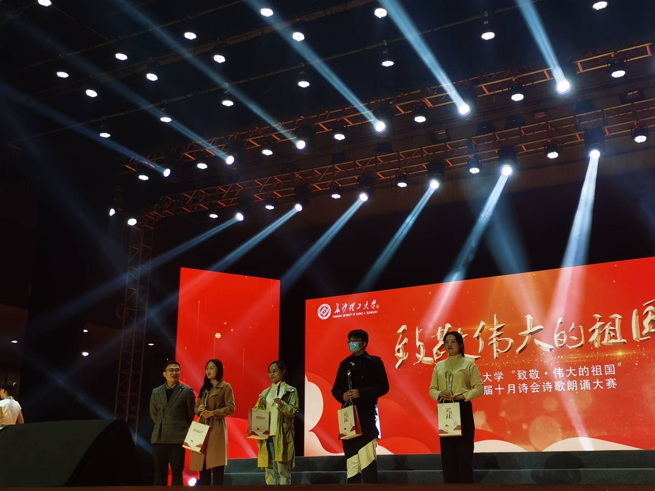 为传诵爱国的时代主旋律,致敬伟大祖国,MG冰球突破官网于11月22日晚19:00,在云塘校区大会堂举办了“致敬伟大的祖国”主题十月诗会诗歌朗诵大赛。
