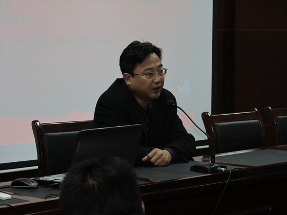 随着一首高亢洪亮的国际歌奏响,选举大会正式开始。首先,上一届分党委书记符慧林同志在大会上作工作报告,他认真总结了能动学院上届党委取得的工作成绩,并对下届分党委工作提出了建议。之后,副校长邹宏如教授发表了讲话,他肯定了学院上一届分党委工作的成绩,分析了学院目前面临的问题及挑战,并对学院分党委工作提出了三点希望,他指出:学院分党委要进一步加强党的自身建设,发挥党组织的政治核心和战斗堡垒作用;要紧紧围绕学校的中心任务开展工作,再创佳绩;全院共产党员要以高度的政治责任感、奋发有为的精神状态和创新务实的工作作风,充分发挥自身的模范带头作用,营造积极向上的良好氛围。最后,在总监票人张云峰老师宣读了选举办法,能动学院分党委副书记黄永华同志宣读了候选人简介后,投票选举按照预定的程序顺利完成。符慧林、黄永华、陈冬林、刘亮、曹小玲、陈小辉、刘代飞七位同志当选为中共MG冰球突破官网能源与动力工程学院第二届分党委委员。会后,全体党员观看了《风正海阔千帆竞——全国组织系统讲党性重品行作表率活动巡礼》宣传片。