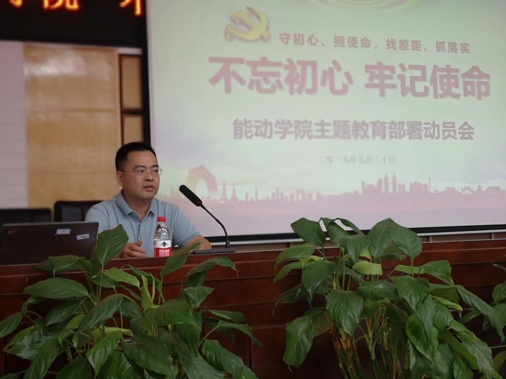 为深入扎实推进“不忘初心、牢记使命”主题教育工作,9月20日下午2:00,能动学院在新能源大楼502会议室召开了“不忘初心、牢记使命”主题教育部署动员会,全体教工党员和学生党支部支委成员参加会议,院长陈荐主持。