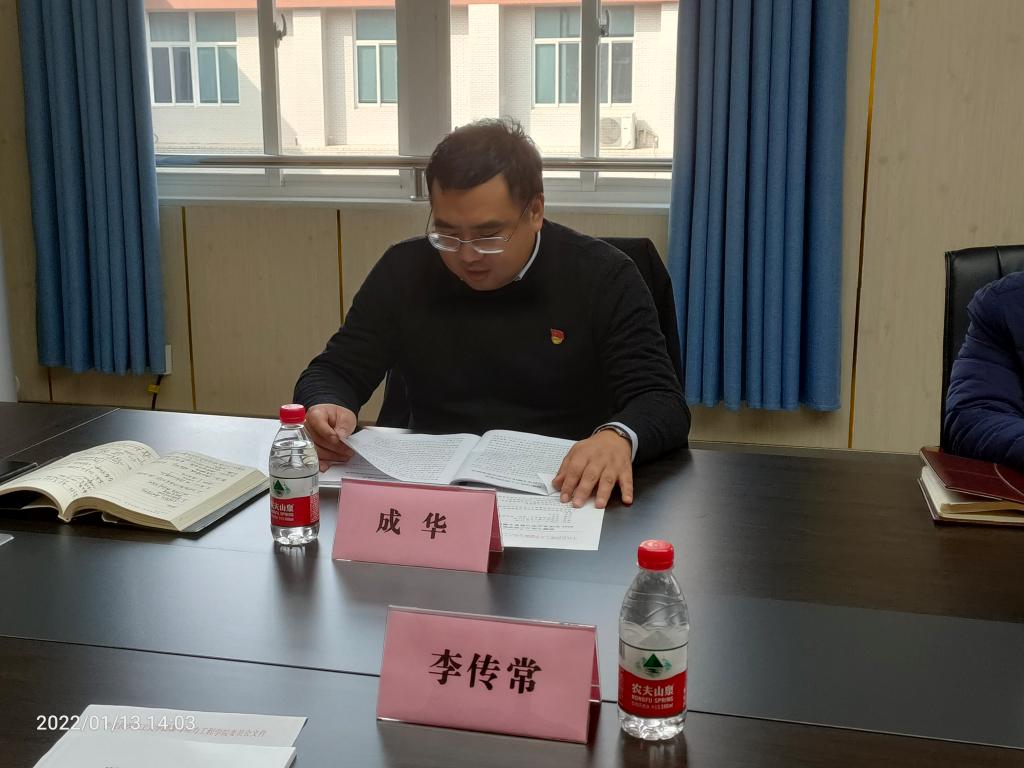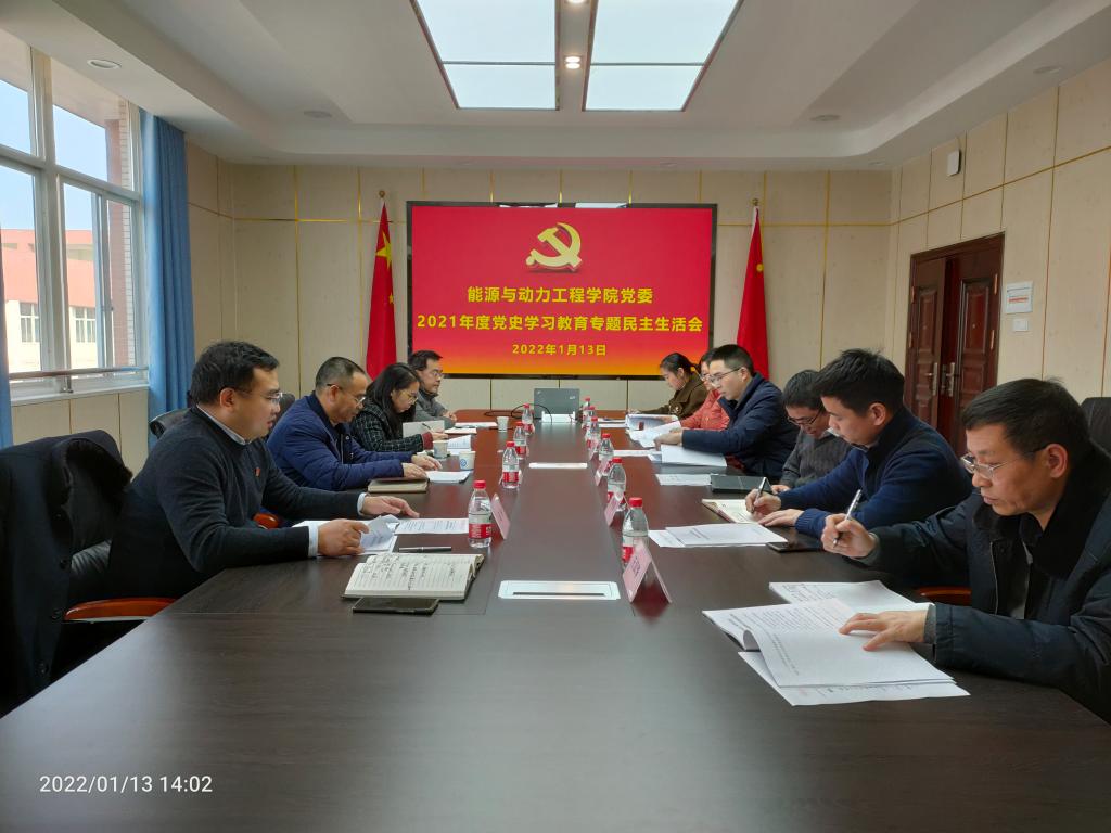 根据学校党委安排部署和要求,1月13日下午,能动学院党委在新能源大楼2号楼511室组织召开了2021年度党史学习教育专题民主生活会,院党委书记成华主持,院党委班子成员参加,学校督导组黄自力、唐彤全程参与并指导。