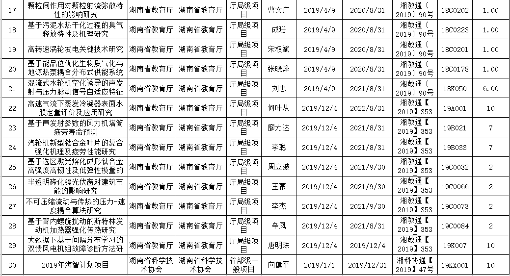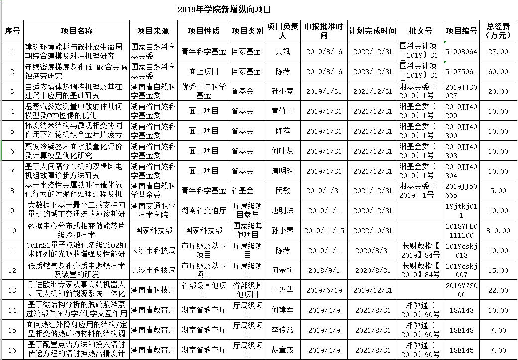2019年学院新增纵向项目