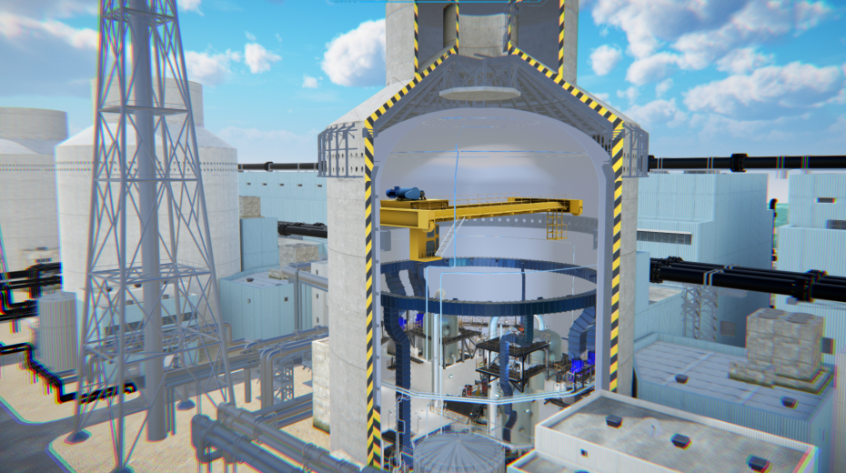 仿真系统以AP1000核电站机组为原型,采用三维虚拟仿真技术,对核岛场景按照设计院设计资料、厂区图纸等进行1:1三维模型搭建,实现对核电站全厂场景的逼真模拟重现,其中核岛可进行三维模型半剖显示。包括电厂主要职能部门的布置、所有设备和系统之间的物理关系、重要设备的模拟操作和参数显示、主要系统的装配、重要操作的可行性试验。可实现虚拟人物在仿真范围内的全厂漫游功能,通过漫游了解电厂的建筑布局、主要设备、生产工艺等,对核电站全貌建立直观的感性认识。