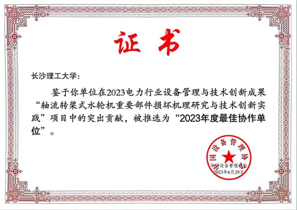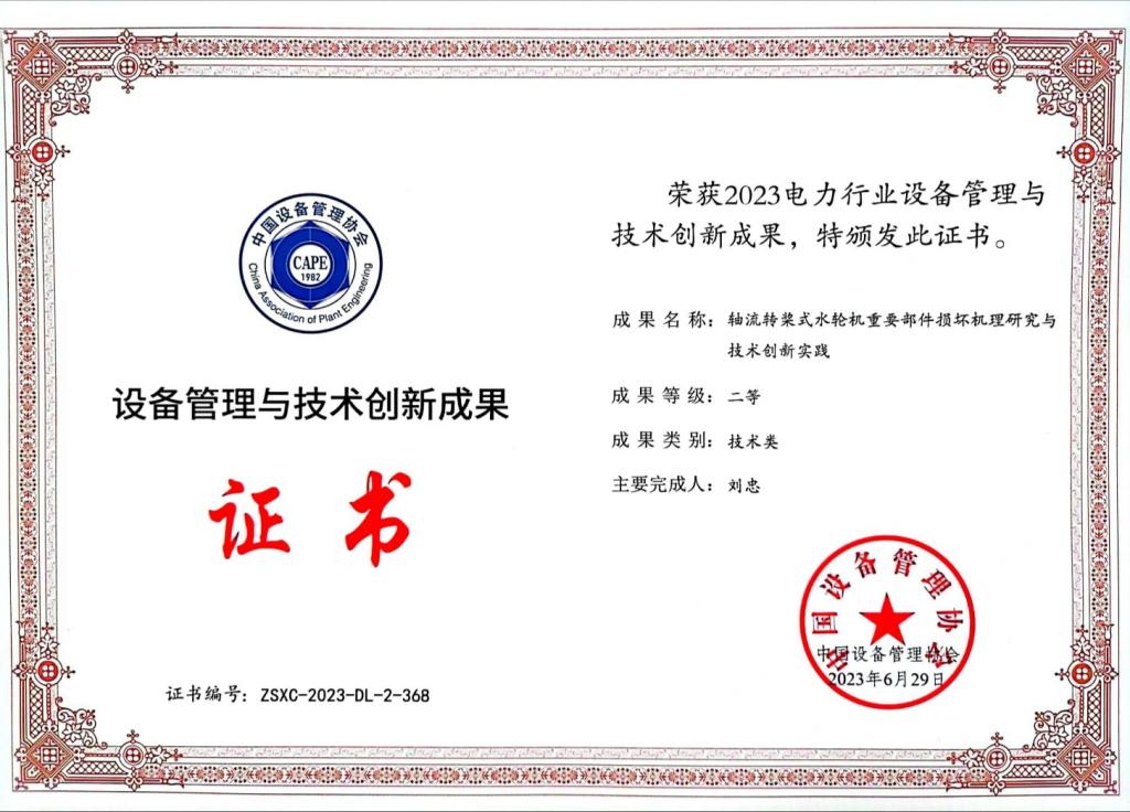 6月29日至30日,由中国设备管理协会主办的2023行业设备管理与技术创新成果交流大会在浙江省温岭市举行。贵州清水江水电有限公司挂治水力发电厂和MG冰球官网共同完成的“轴流转桨式水轮机重要部件损坏机理研究与技术创新实践”荣获2023 电力行业设备管理与技术创新成果二等奖,MG冰球官网被授予“最佳协作单位”。校方主要完成人、我院刘忠教授参加了此次大会。