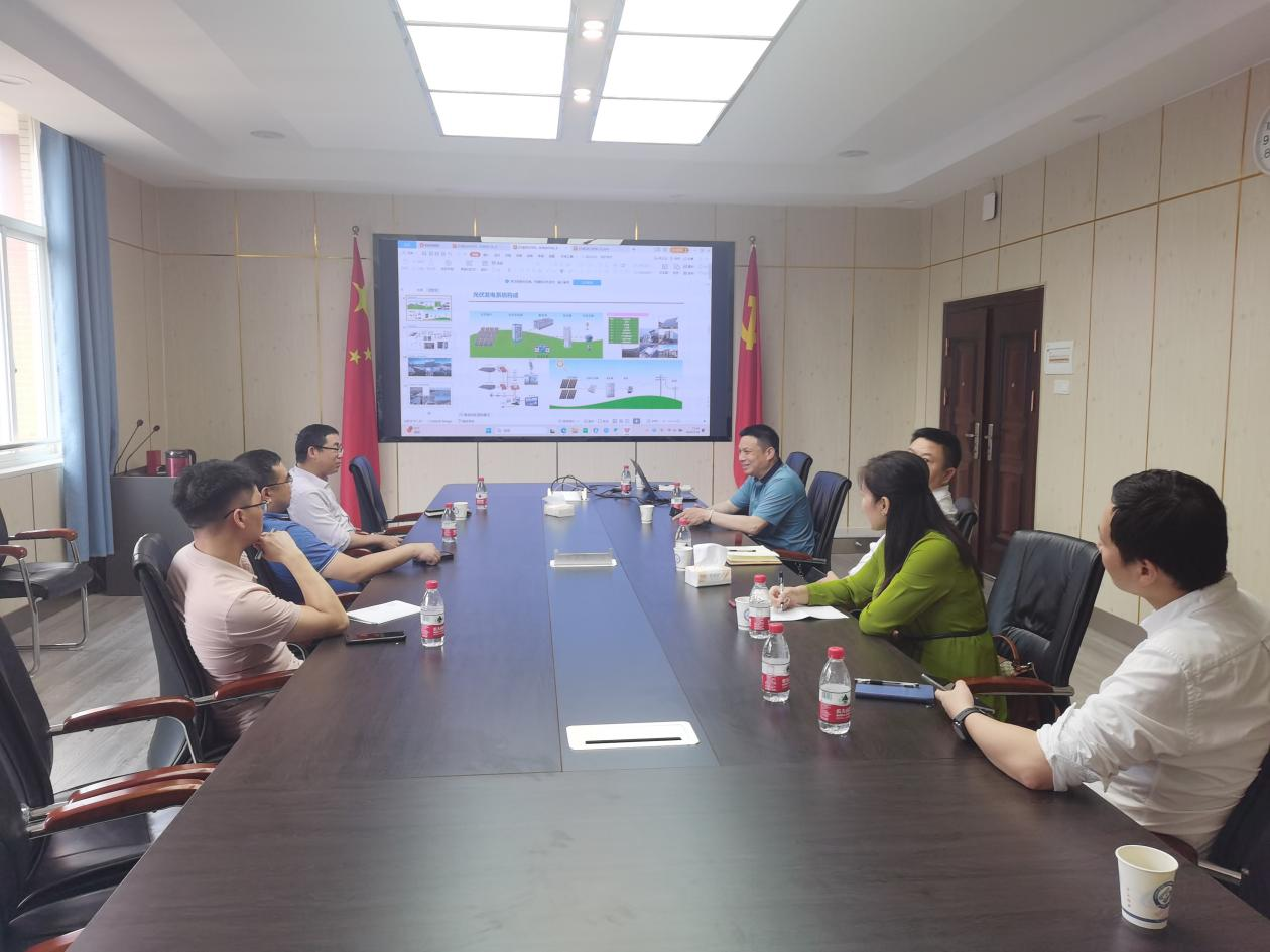成华书记对陈伟其董事长一行表示热烈欢迎,介绍了学院光伏、储能、风力发电等领域的科学研究与人才培养情况,陈伟其介绍了湘能楚天电力科技有限公司的最新发展情况。校企双方就新能源科普广场项目建设、工信部先进能源电力装备专精特新产业学院建设,以及校企人才培养和科技合作等方面进行了深入交流。会谈结束后,陈伟其一行参观了学院“源网荷储”示范项目,并远程参观了吐鲁番装配式能源岛项目的运行情况。