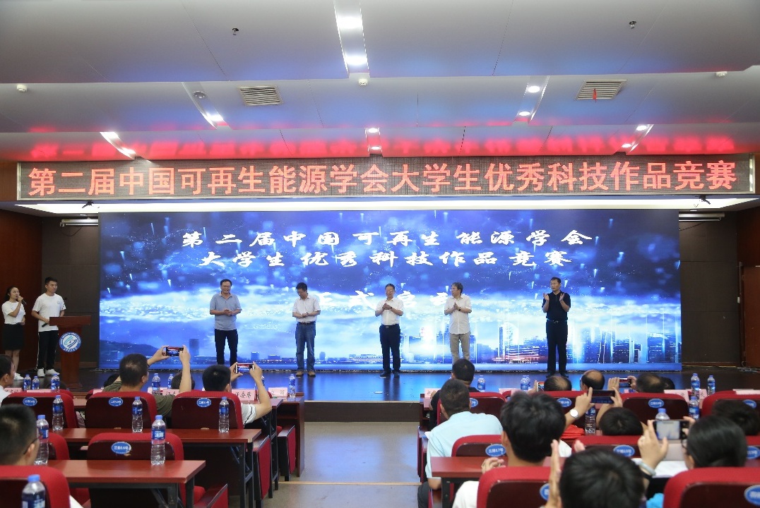 最后,中国可再生能源学会副理事长赵颖教授、中国可再生能源学会秘书长祁和生教授、MG冰球突破官网纪委书记胡永乐教授、中国新能源科学与工程专业联盟秘书长杨世关教授和MG冰球突破官网教务处处长刘朝晖教授上台共同启动本次竞赛。