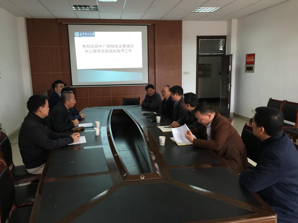 中广核核电运营培训中心党总支书记袁松、处长李劲光、主管贺永波、工程师谭翔分别介绍了中广核核电运营培训中心基本情况、仿真实训条件建设、核电人才联合培养意向。