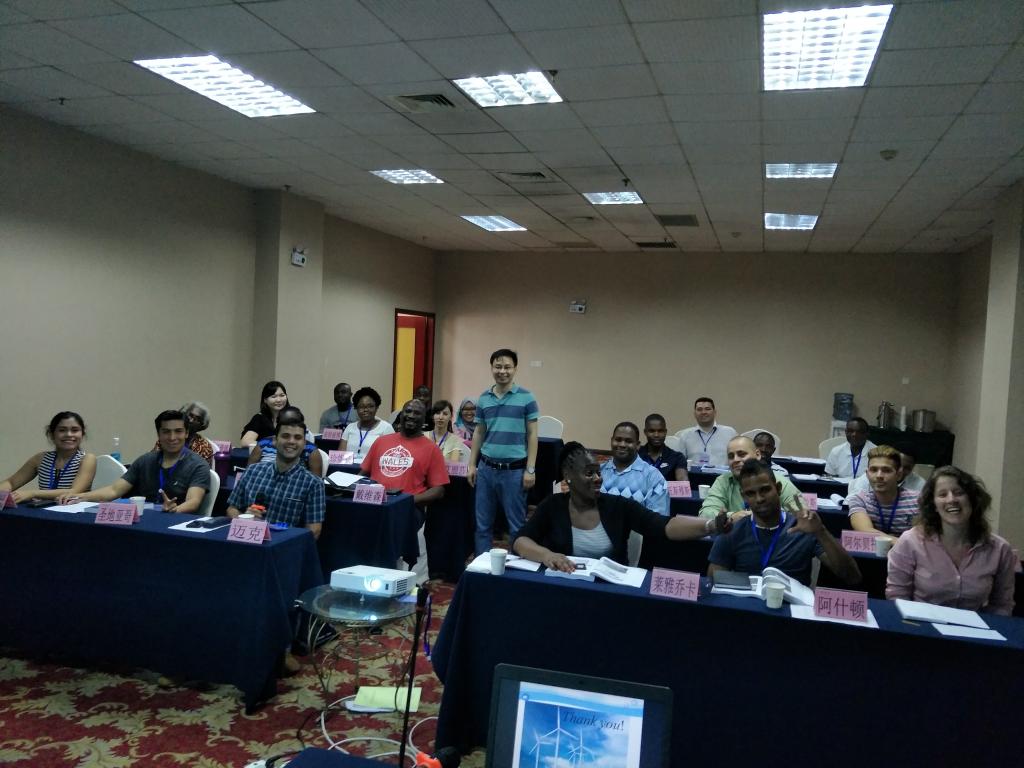 2017年9月22日上午,2017年发展中国家新能源开发与利用研修班由国家商务部主办,湖南省商务厅培训中心承办,在湖南长沙举办。该研修班的23名学员分别为乌拉圭、 格林纳达、 肯尼亚、 委内瑞拉、 厄瓜多尔、 巴拿马、 安提瓜和巴布达、 蒙古、 圭亚那、 摩尔多瓦、 坦桑尼亚、 津巴布韦、 委内瑞拉、 印度尼西亚、 纳米比亚等国家的技术官员。能动学院教师唐明珠博士受湖南省商务厅邀请为该班讲授《风能发电理论基础》,主要内容包括风资源、风力机、发电系统、主传动与制动、变桨系统、偏航系统、控制系统、支撑系统等。讲学内容受到了该班学员的一致好评。此次讲学有助于提高我院教师服务国际新能源培训的能力和拓展与发展中国家新能源技术官员的交流。