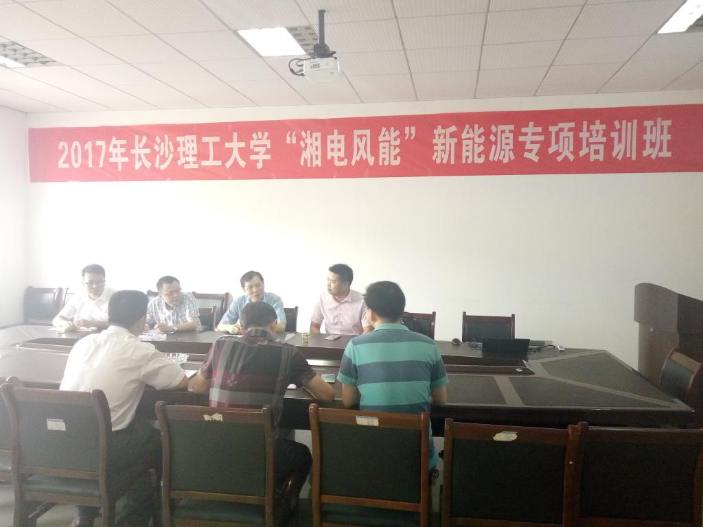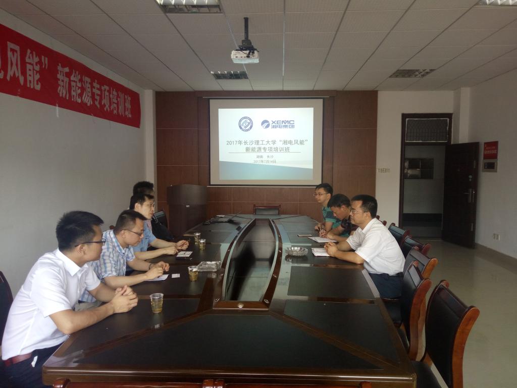 2017年7月14日,2017年MG冰球突破官网“湘电风能”新能源专项培训班开班仪式在我院工科一号楼A422室举行,湘电风能龙辛技术副总、吴晓鹏副院长、刘自强副部长、王成泽工程师、我院陈荐院长、田向阳副书记、唐明珠副主任及新能源科学与工程专业的部分本科生参加开班仪式。MG冰球突破官网“湘电风能”新能源专项培训班目的是湘电风能选拔2014级新能源专业本科生参加风资源评估工程师培训,实现学校人才培养和企业人才需求无缝对接。