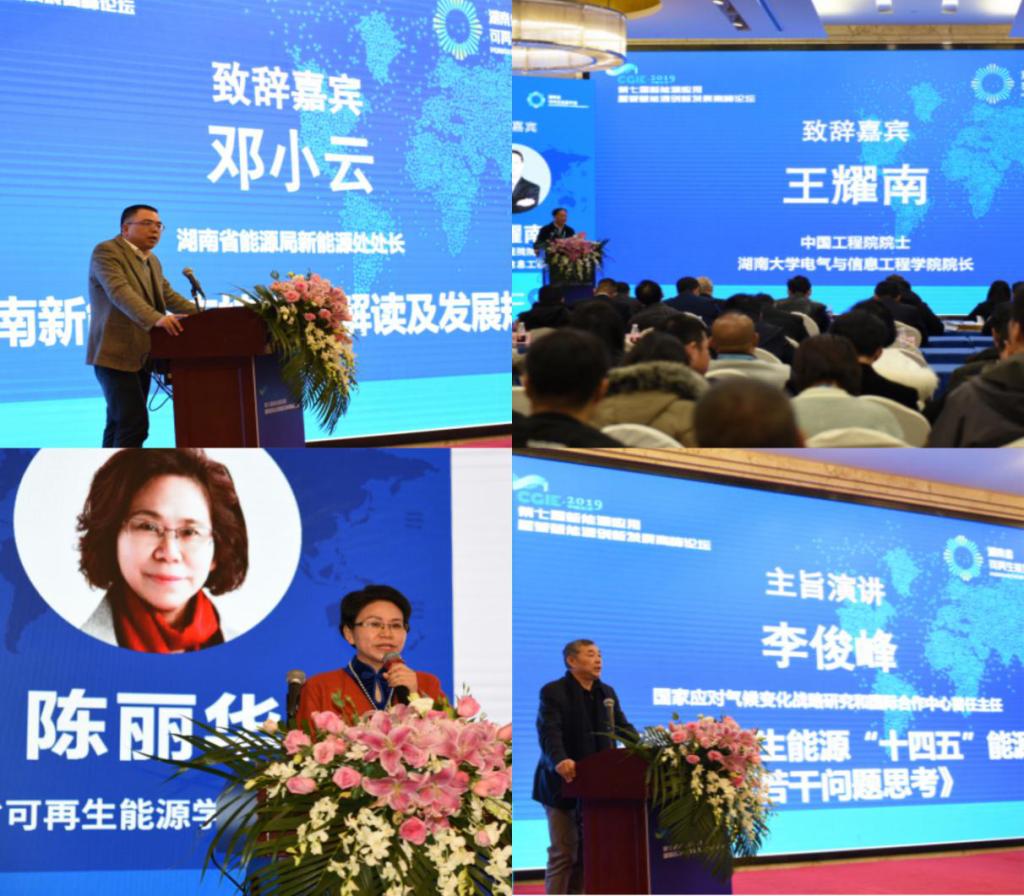 2019年12月27日,由湖南省可再生能源学会、湖南省电工技术学会和湖南省新能源产业协会主办的第七届中国(长沙)新能源应用暨智慧能源创新发展高峰论坛在长沙华天大酒店隆重举行。能动学院副院长何建军,学院教师向健平、陈建林、谢七月、彭卓寅,访问学者马世明,以及新能源专业研究生和本科生共10余人参会。