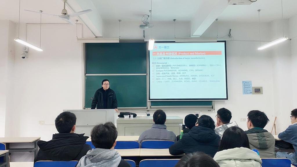2020年12月16日14:00,三一集团与MG冰球突破官网联培国际班第七次培训课程在工一B212举行。本次课程由三一集团泵送事业部泵送公司研究院研发所长黄运明领导主讲,主题为“泵车总体设计培训”,国际班十八名学员参与了此次培训。