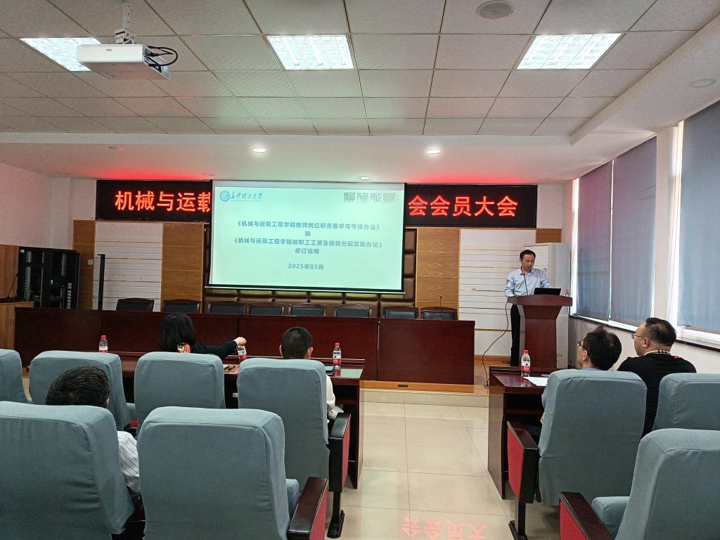 2025年3月25日下午,机械与运载工程学院教职工暨工会会员大会在工一B417召开,学院教职工(工会会员)参加了会议,会议由学院副院长兼工会主席唐宏宾主持。