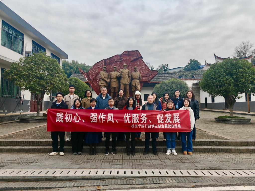 为深入学习贯彻党的二十大和二十届历次全会精神,巩固拓展学习教育成果,进一步增强行政党支部党员队伍的凝聚力和战斗力,强化宗旨意识、改进工作作风、提升服务效能,2025年12月5日,机械学院全体领导班子成员、行政党支部全体党员、入党积极分子及辅导员赴浏阳市红色教育基地,开展了“践初心、强作风、优服务、促发展”主题党日活动。