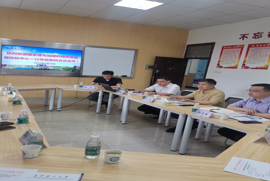 6月16日上午,国家建筑城建机械质量监督检验中心主任吴瑞祥、技术总监李炯昊、质量总监刘丽杰、建筑工程机械部部长唐仕林、建筑工程材料及制品部技术负责人陈成等一行人来我院进行了产学研合作洽谈。MG冰球突破官网科技处副处长胡宏伟、汽机学院党委书记施一满、副院长尹来容以及汽机学院教师代表徐晓强、吕