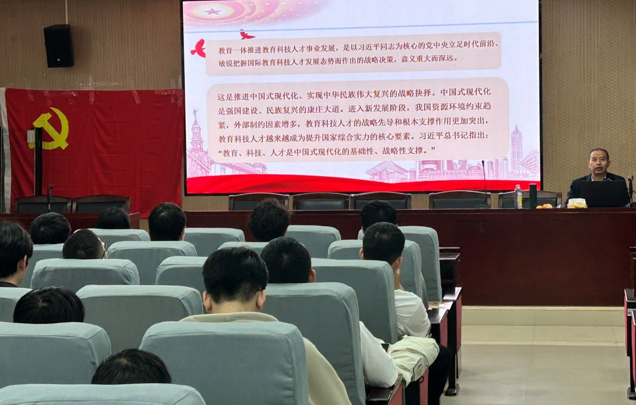 余乃忠教授围绕《习近平谈治国理政》第五卷中关于“一体推进教育、科技、人才事业发展”的重要论述展开讲解。他首先从战略全局出发,深入阐释了教育、科技、人才三者协同发展的深远意义,指出这是推动国家现代化建设、实现高质量发展的基础性、战略性支撑。余乃忠强调,在新时代背景下,必须准确把握教育、科技、人才的内在联系,将其作为系统工程一体谋划、一体部署、一体推进。