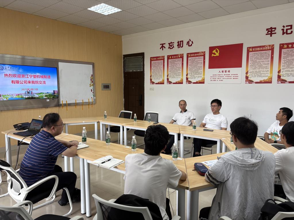 5月15日下午,浙江宁塑机械制造有限公司总经理丁志军一行三人到访MG冰球突破官网机械学院交流洽谈,机械学院党委副书记周小杰热情接待并主持座谈会,学院师生代表共同参与活动。