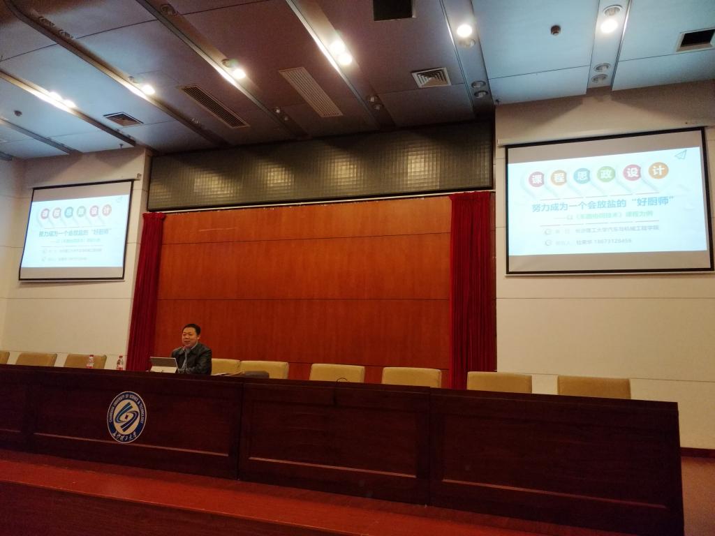 报告中,杜荣华围绕“如何进行课程思政设计”主题,以“车路协同技术”课程为例,从“学生培养面临的困境、课程思政设计、课程思政案例、教学反思”等四个部分阐释了他对“课程思政”建设的理解。报告借用习近平总书记“好的思想政治工作应该像盐,但不能光吃盐,最好的方式是将盐溶解到各种食物中自然而然吸收。”的寓意,将“盐的作用、盐的来源、放盐的场合、放盐的时机、放盐的方式”引申到“课程思政”建设中,详细解读了《车路协同技术》课程中11个“课程思政”典型教学案例的设计思路,教大家如何努力成为一个会放盐的“好厨师”。同时,他强调,课程思政与专业思政建设,重心在学院,关键在教师,基础在课程,重点在思政,成效在学生,要让“课程思政”建设成为课堂教学改革的一个推手。