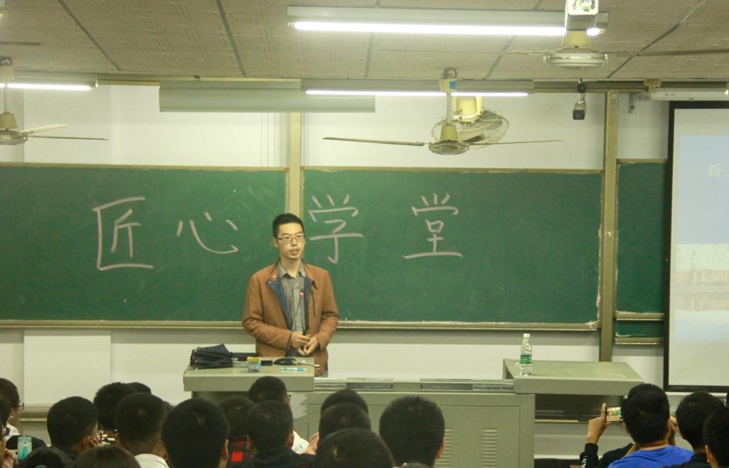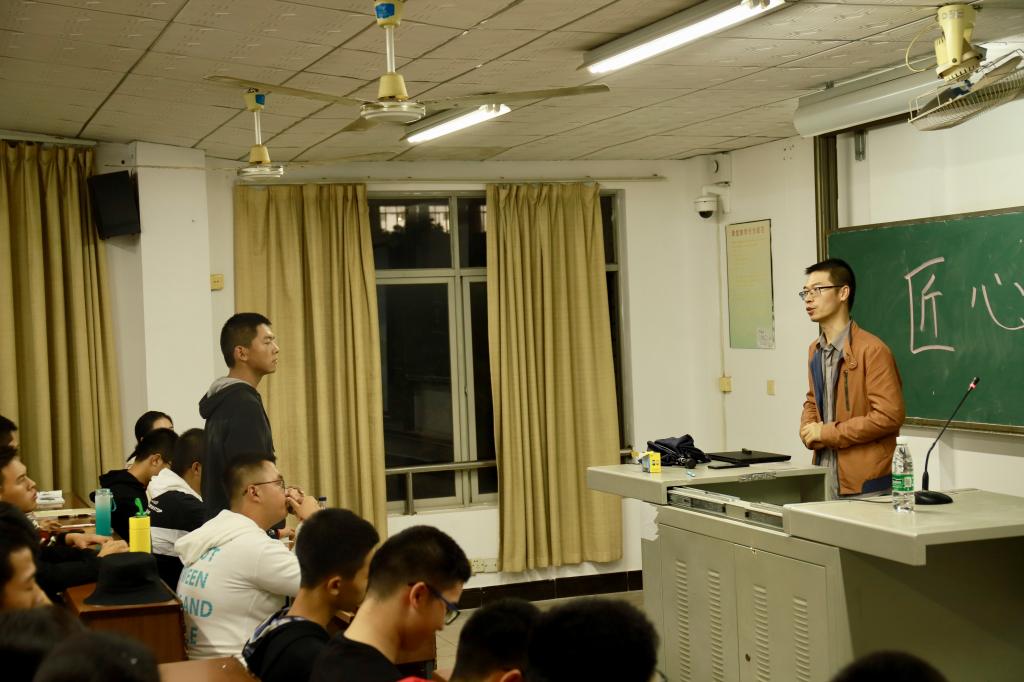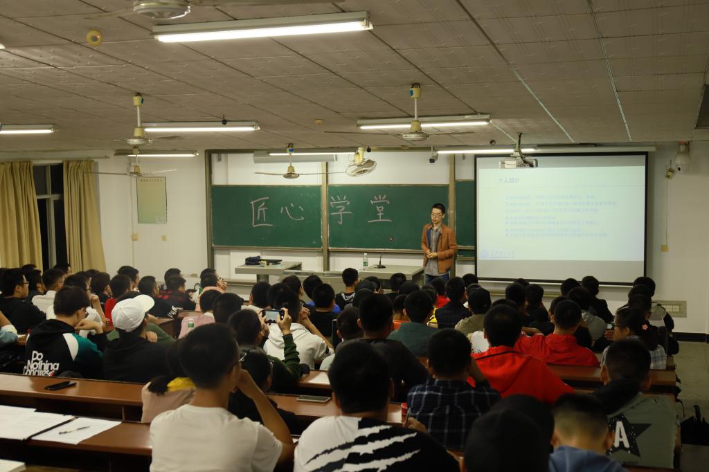 2019年10月22日晚,在MG冰球突破官网金盆岭校区12教315室,长理匠心学堂通识讲坛继续开展,汽机学院高凯博士与研究生朱宁为同学们作了题为“新工科背景下机械类本科生如何进行科研活动”的讲座。