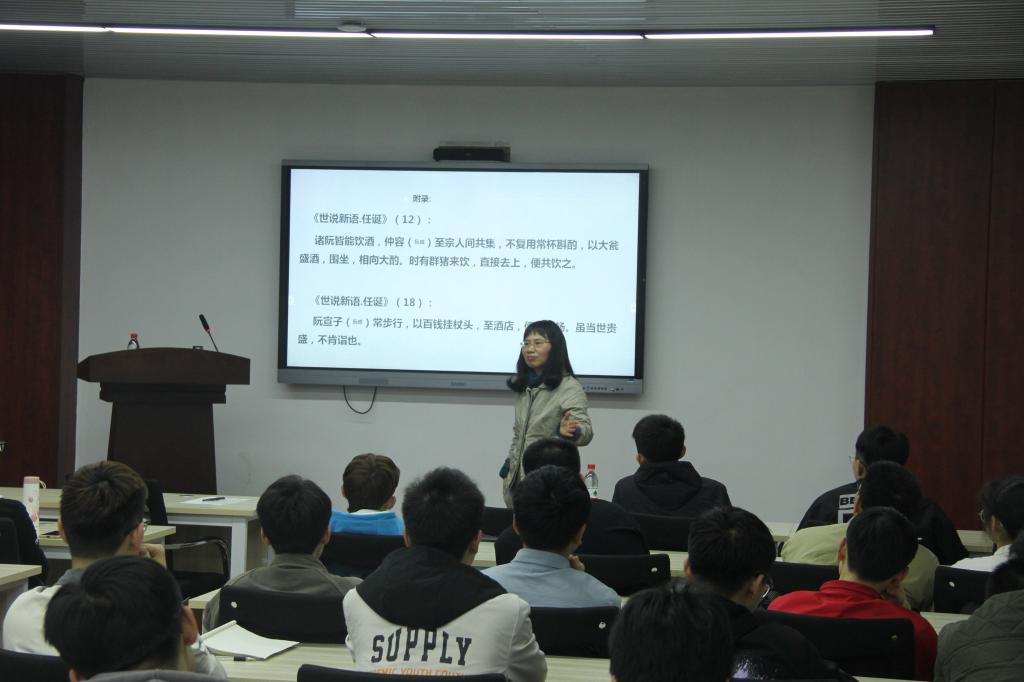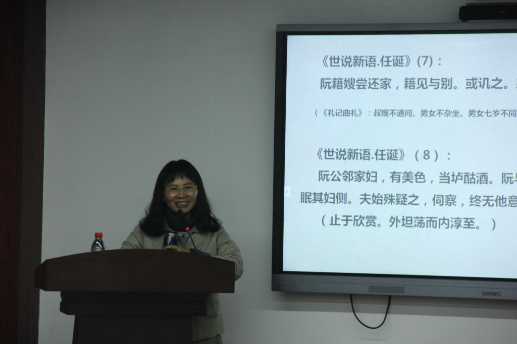 讲座伊始,宁教授先向同学们具体介绍了《世说新语》的背景内容,接着引用许多名士大家的话语,并且在其中为我们讲述了《世说新语》中体现率性而为的几位名士与他们异于常人的表现。