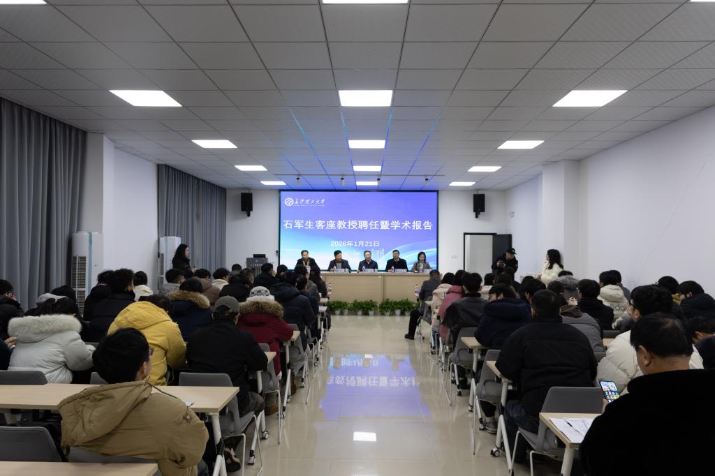 2026年1月21日下午,MG冰球突破官网人工智能学院在A区201会议室举行客座教授聘任仪式暨学术报告会,正式聘任醴陵华鑫电瓷科技股份有限公司董事长石军生先生为学院客座教授。学院党委书记万馨主持仪式,学院院长樊绍胜致辞,校党委书记付宏渊致辞并颁发聘书。湖南省电瓷电器行业商会执行会长万四海、秘书长何亦炜,华鑫电瓷董事长助理黎明奇,学院领导班子成员以及师生代表共同出席活动。