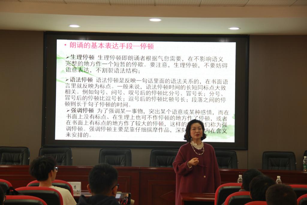 李慧以“绘声如画——探索朗诵艺术的魅力”为题,引领学员们踏入了一场朗诵技巧的盛宴。她围绕朗诵的深刻内涵、前期准备以及基本表达技巧三大核心板块,巧妙结合生动实例,通过互动练习的方式,深入浅出地展开讲解。李慧特别强调,朗诵的核心在于“忘我”,鼓励学员们忘却现实身份,全身心地沉浸在朗诵的世界之中,以此激发朗诵的无限潜能。
