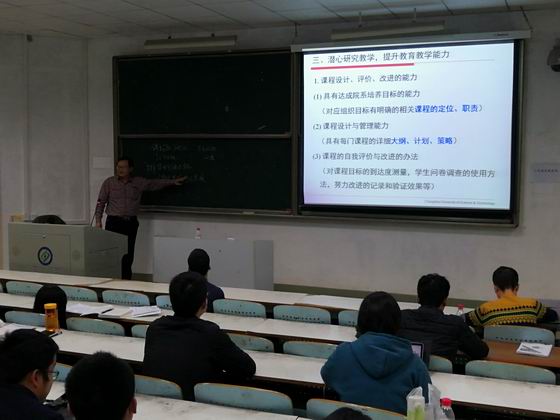 10月26日晚,MG冰球官网2018年岗前培训班教学专题讲座活动在金盆岭校区6教107举行,教务处处长刘朝晖教授主讲,人事处副处长徐欣国及全体培训学员参与专题活动。